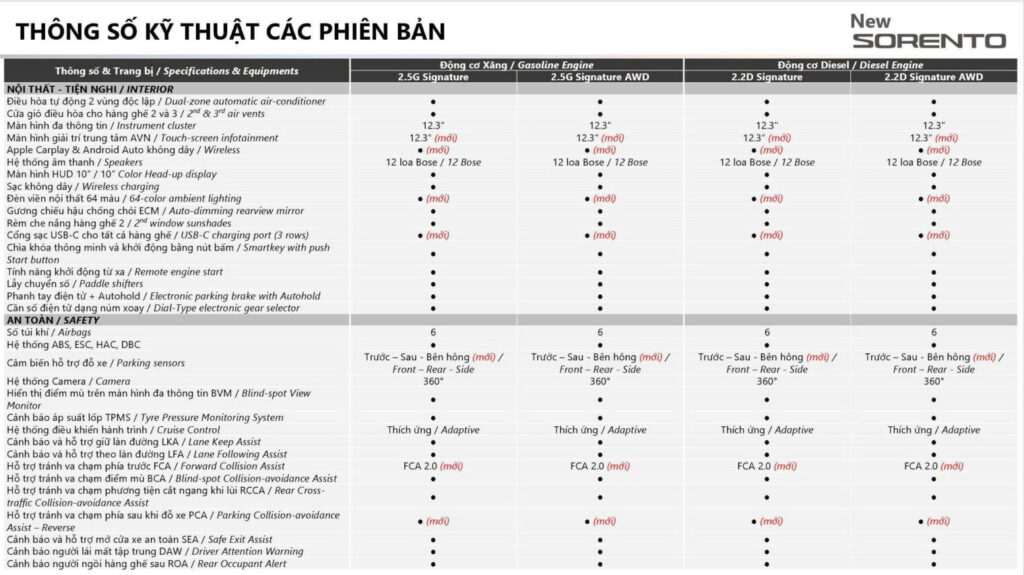 Bảng Giá Kia Sorento All New cập nhật tháng 11/2025